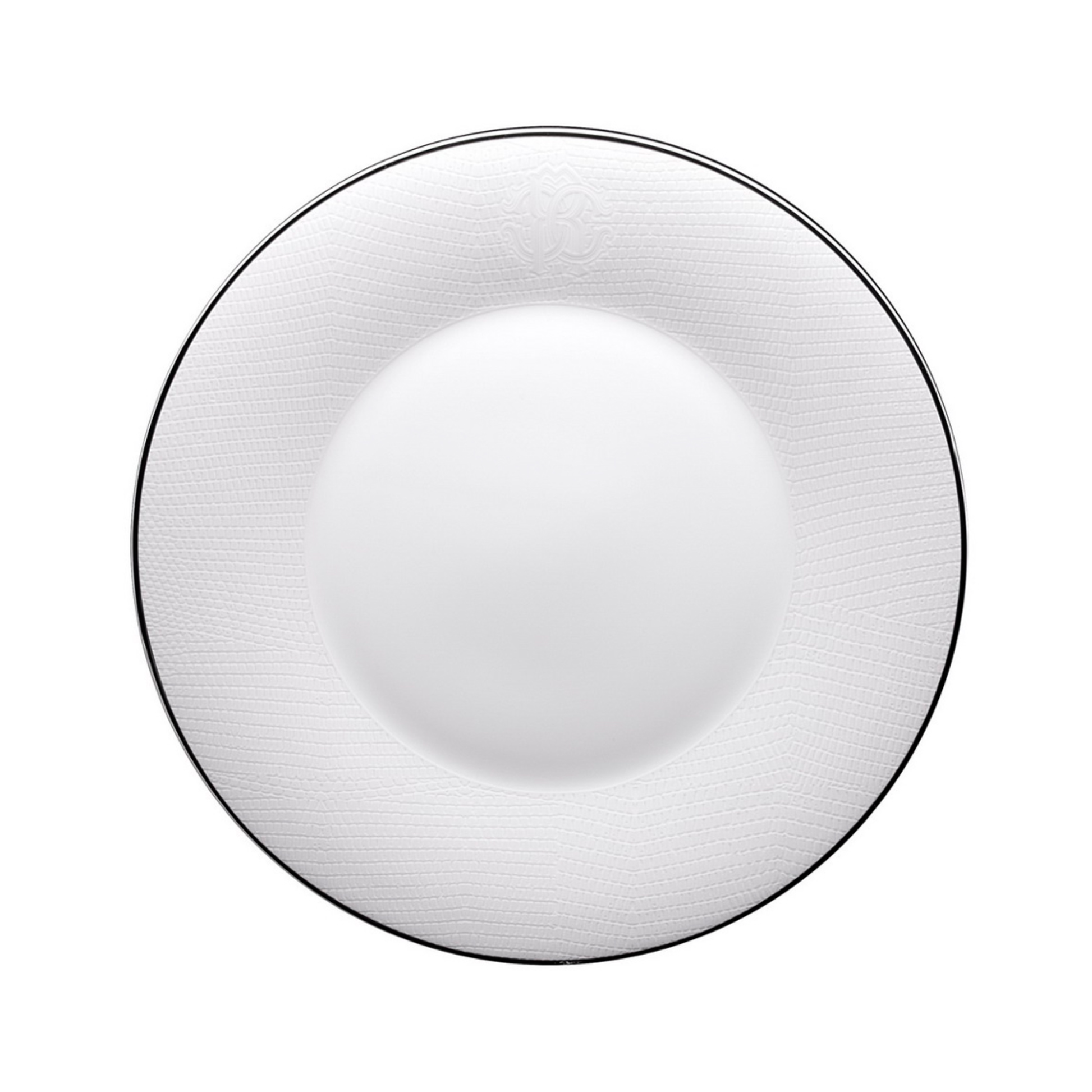 This elegant round serving dish from the Lizzard Platin collection features a striking platinum reptilian-pattern border that reflects Roberto Cavalli’s iconic exotic glamour. Crafted from high-quality porcelain, the 32 cm dish is ideal for serving meals, desserts, or as a decorative platter. The platinum sheen gives it a contemporary luxury feel, perfectly complementing monochrome or metallic dining aesthetics. A durable yet statement-making addition to your designer serveware.