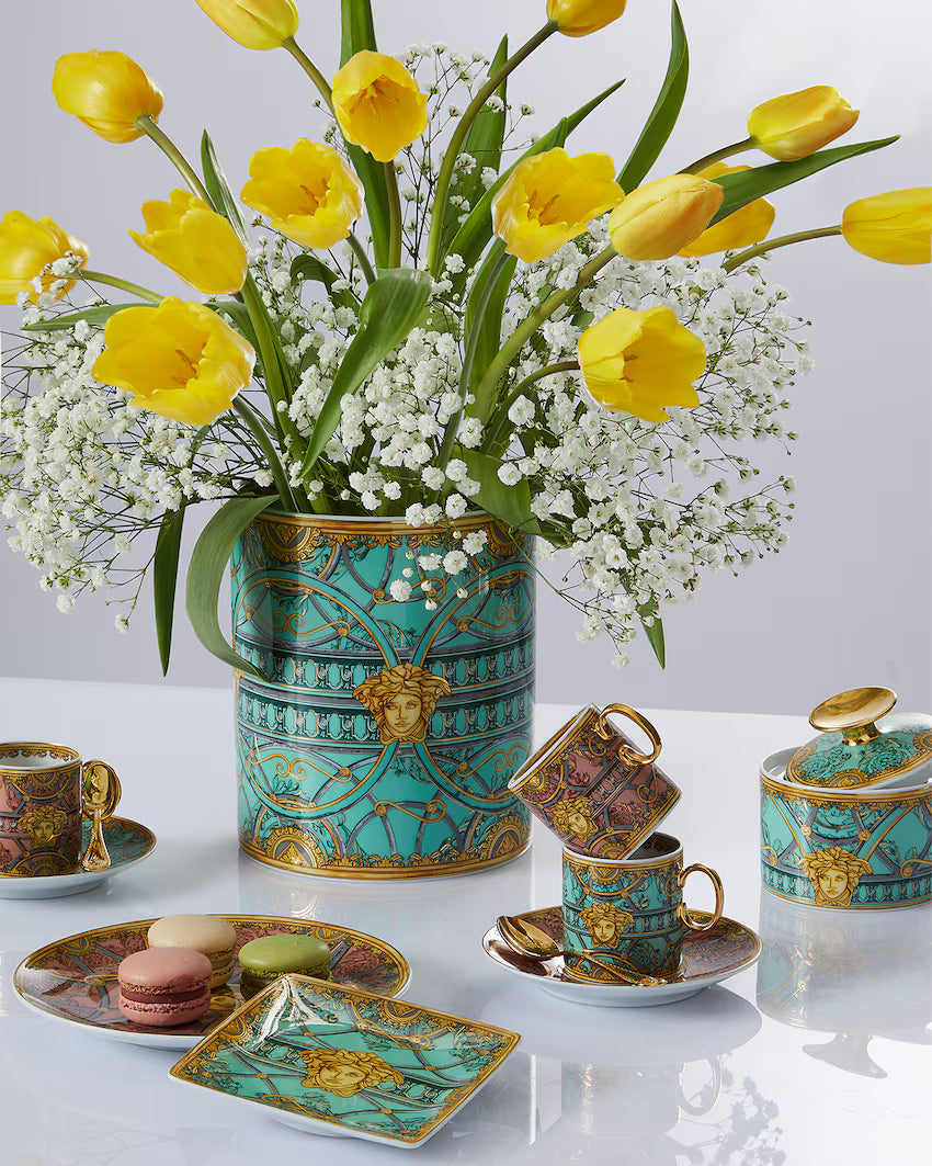 Crafted from the finest porcelain, this vase is part of the “La Scala del Palazzo” collection, inspired by Versace’s iconic Milanese palazzo on Via Gesù. The design draws from the majestic marble staircase that leads to the private living quarters, a space that symbolises elegance, privacy, and refined luxury.