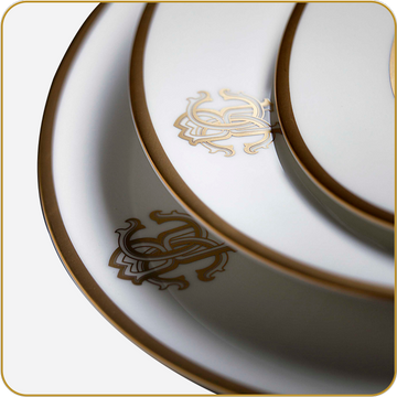Elevate your tea time with the exquisite Versace Tea Cup & Saucer set. Crafted from fine porcelain, the 250ml cup features Versace's iconic gold Medusa emblem, symbolizing timeless elegance and style. The classic cup shape paired with a delicate handle ensures a comfortable and refined tea experience.